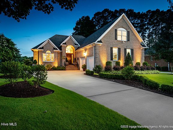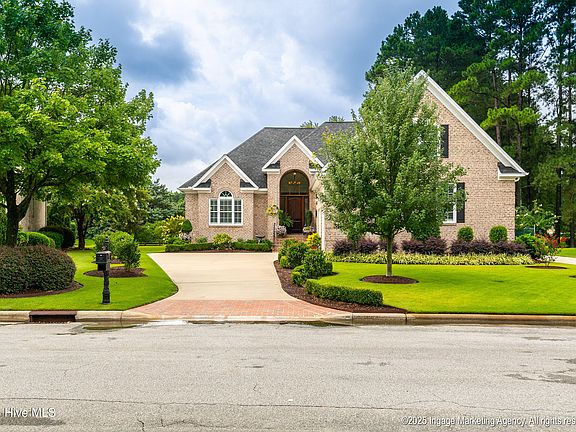 This exceptional residence showcases a custom build by Len Tozer. A striking limestone focus wall frames the sleek horizontal gas fireplace, creating a dramatic centerpiece in the living area. Etched glass pocket doors connect the sunroom and living room, offering both style and versatility, while electronic blinds and plantation shutters add a touch of sophistication. The gourmet kitchen is a chef's dream, featuring a waterfall quartzite island, Thermador appliances, wine cooler, warming oven, and abundant custom cabinetry. Eight-foot interior doors enhance the home's sense of scale and craftsmanship, while a four-zone thermostat ensures personalized comfort in every space. The oversized primary suite provides a private retreat, complete with a spa-inspired bath showcasing a unique hanging mirror design. Outdoor living is equally impressive with beautifully landscaped grounds, flowering trees, rose gardens, and lush zoysia grass. Every detail has been thoughtfully designed for beauty, function, and comfort, making this home truly one of a kind.