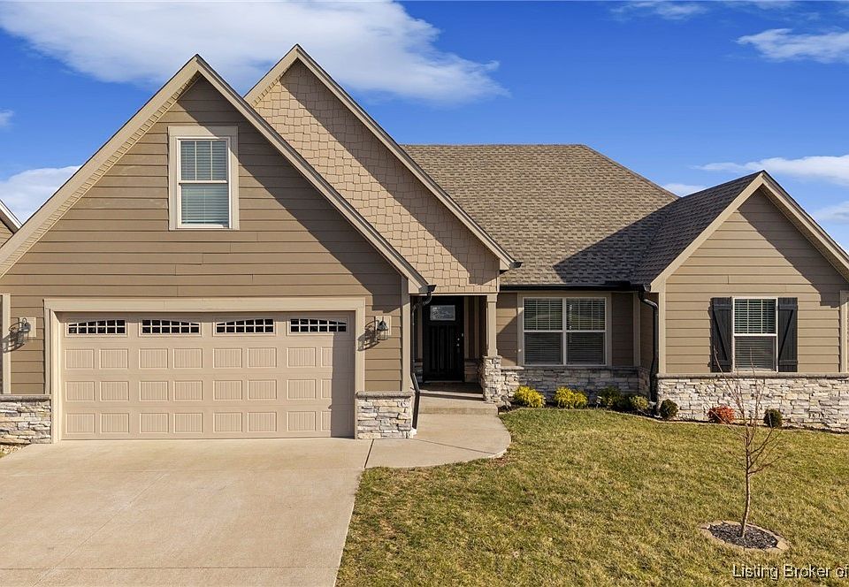 Welcome home to this beautiful 4-bedroom, 2-full-bath brick, stone, and Hardie board home built in 2018, located on a spacious corner lot in the heart of desirable Georgetown. Enjoy small-town charm with quick access to nearby schools, local dining, and everyday conveniences, all while being just minutes from Louisville. This open-concept home features a stylish kitchen with a center island, abundant cabinetry, and excellent storage throughout. The first-floor primary suite offers comfort and privacy, complemented by a dedicated laundry room for added convenience. Step outside to a large deck overlooking the newly professionally fenced backyard—perfect for entertaining, pets, or relaxing after a long day. This community is complemented by a convenient clubhouse with access to the community pool! Modern construction, thoughtful design, and a prime Georgetown location make this home truly move-in ready.