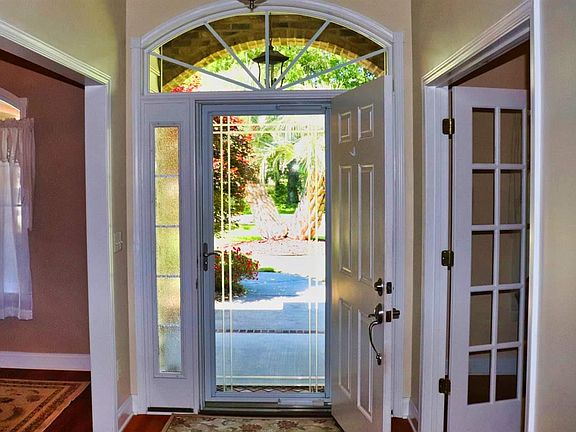 This 4-bedroom, 3 bath home was custom built in 2005 with many upgrades. there are hardwood floors throughout the home except in the kitchen, baths and laundry which have tile floors. The kitchen is very large and has corian counter tops, stainless steel appliances, custom cabinets, desk, kitchen nook, and pantry. There are 4 large bedrooms with walk-in closets and 3 full bathrooms. The Master suite has 2 walk-in closets, a beautiful bathroom with 2 vanities, water closet, whirlpool tub and separate walk-in shower. There is a gas fireplace in the living room surrounded by custom built-in shelving. Off the living room is a large enclosed Eze breeze windowed sunroom and the windows in the home are 3M Hurricane glazed. There is a new Stainless steel 80-gal water heater and 1 new HVAC unit with New Air Filters on Both HVAC units. This beautiful home is surrounded by custom landscape, that includes a 7-zone irrigation system, extensive mature shrubs and plants, and a pergola covered patio for beauty and privacy.