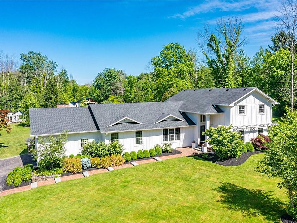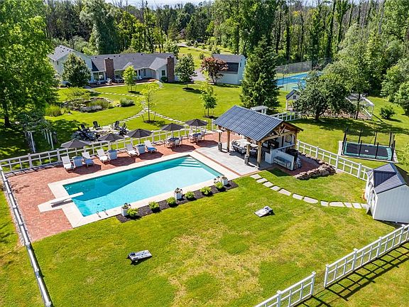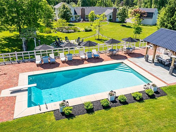 An exquisitely renovated masterpiece by award winning designer has undoubtedly created one of Penfield's most sophisticated all inclusive living. Stunning oasis on 19.1 acres. This 3,766 sq ft estate leaves nothing to be desired. Appointed with precision craftsmanship & custom finishes. Beyond the pearly gates is an amenitized outdoor kitchen, heated in-ground pool & pool house. Surrounded by sprawling manicured grounds, sports court, in-ground trampoline & outdoor shower. A serene Koi pond, waterfall & grapevine trellis adorn the backyard.Features 2 story foyer, first floor owner's suite, 4 bdrm second floor, 3.5 baths, first & second floor laundry & 3 fireplaces. Planked wood ceilings in formal living rm, den, sunroom, family rm. Kitchen designed w/seating area & adjacent to dining rm & custom coffee bar. Sub Zero, Bosch, Thermador SS APPL, Quartz & Soapstone countertops. Alta Vista Oak floors. Luxury shower for your pets. Lower level dedicated to gym & recreation. A/C, Tankless water, Irrigation System, Invisible Pet fence. A huntsman's dream, ATV & hiking trails. Barn & attached garage. Extensive stone & landscaping. ASK FOR A FULL LIST OF RENOVATIONS! WATCH THE ONLINE VIDEO!!!