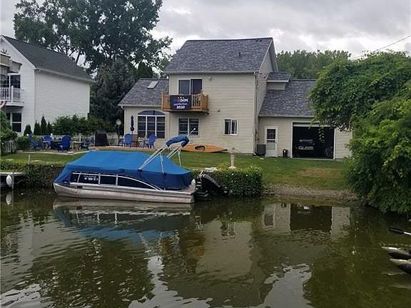 To all waterfront lovers, boat lovers, jet ski fans or people who to like fish and just love the water. This contemporary, Colonial home is on Long Pond Channel leading to Lake Ontario. It has its own launch, that allows you to launch any size toy that you have. Front and back garage doors align directly to the launch also. Home has an open floor plan, with a first floor laundry. A brand new kitchen in 2020! Living room has cathedral ceilings and skylights along with two arched oversized Anderson windows. A gas fireplace takes the chill out on those cold evenings. The master bedroom has a sliding glass door to the balcony that gives a great view of the lake. The Master bedroom features its own bath and walk in closet!!! Only a mile from the parkway which makes commute to work easy. Its a must see! FYI, seller is leaving a next to new snow blower, because he's moving south! Showings, Monday -Friday 4:30-7pm.