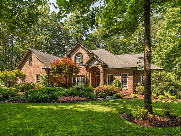 Full brick home on over 1 A w/professional landscaping by master gardener. Home includes main level master suite w/fireplace, deluxe bath & sunroom. Open plan w/2 story great room, formal dining & amazing updated kitchen w/granite, gas range, double ovens, farmhouse sink & breakfast area overlooking extensive terrace & decking. New hardwoods compliment the main living area. Upper level complete w/ 3 large bedrooms & light filled bonus roo0. Sought after neighborhood in convenient location.