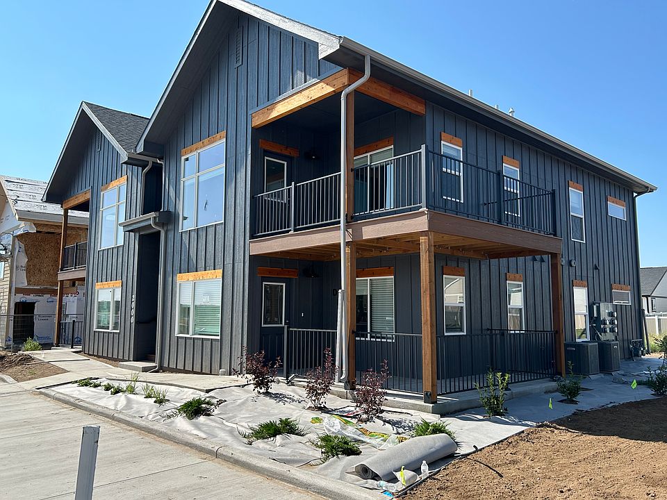 Brand New unit built in Sep 2024 is a turn key and ready for you to move in. Spacious units feature three bedrooms and two bathrooms with upscale finishes, all appliances including washer and dryer, quality LVP in main living areas with carpet in bedrooms, large windows with window coverings, private porch or balcony, efficient gas furnace and central A/C. Sound-dampening construction used between units includes sound mat between floors. Low-maintenance farmhouse-style exterior and nicely landscaped with an adjacent park. Exceptional location in the master-planned Sweetgrass subdivision, just across from LCCC and minutes from downtown. Pets allowed with a fee First month's rent and security Deposit is due at signing of the lease. Minimum leasing terms is one year. Sixty Day written notice is required if you