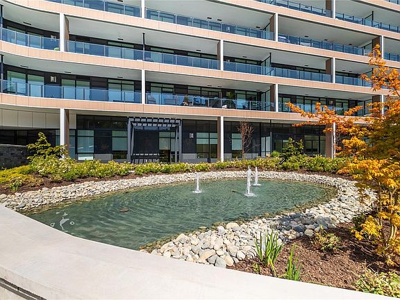 NO GST & BELOW ASSESSED VALUE! Your Luxury One Bear Mountain Condo with stunning sunrise views awaits. This bright & airy 2-bed, 1-bath luxury concrete and steel build condo spans 894 sq. ft., offering breathtaking sunrise & mountain views. Thoughtfully designed, featuring engineered hardwood flooring, custom millwork, a cozy gas fireplace with built-in shelving, & spacious 246 sq. ft. private patio. A chef’s dream kitchen features two-tone Italian cabinetry, quartz countertops, spacious island, integrated lighting, & premium Bosch stainless steel appliances. The primary suite is a tranquil retreat featuring private access to the balcony along with access to the bathroom featuring soaker tub and dual vanity. Enjoy exclusive access to exceptional amenities, including an outdoor pool, a sky lounge, a yoga studio and fitness center, bike storage, a business center, and outdoor terraces with fire pits—offering a lifestyle of luxury only available at Bear Mountain.