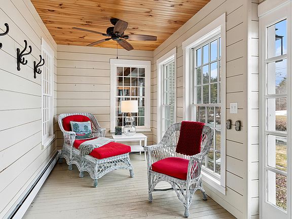 This elegant Vermont cape farmhouse brings the best of cozy, charming, and comfortable together in one package. Walk into an enclosed porch with a porch swing on one side and a reading nook on the other. The updated kitchen with stainless steel appliances and magnificent views opens to the family room, complete with a wood-burning fireplace. There is a lovely dining room with a butler’s pantry attached. Across from the butler’s pantry are the powder room and a home office. Beyond the classic center hallway is a full-length living room with views to the front, back, and side of the house. Upstairs the Primary bedroom suite is on its own off to the right, with a large walk-in closet and ensuite bath with bespoke fixtures. Down the hallway are two roomy bedrooms, a shared bath, and a laundry room. At the end of the hallway is a bonus room. A short walk from the house, you will find the two-story barn with stalls, a tack room, a chicken coop, and a generous loft waiting for you to make it an artist studio or playroom. A brook out back provides a place to cool off or fly fish. This property is 3.5 miles from the Village of Woodstock, conveniently positioned in Pomfret, between Woodstock and Quechee.