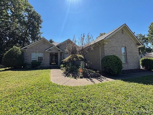 REDUCED!!Wonderful all brick ranch with a full basement and a 2 car attached garage located on a corner lot. Gorgeous living room with vaulted ceilings and a gas fireplace. The Eat in kitchen has plenty of cabinets and counter space and includes appliances that remain. There is also a Breakfast Nook off the Kitchen. It has a nice Formal Dining Room featuring a raised ceiling and a palladium window which gives lots of natural light. The Primary Bedroom Suite is large and private and includes a full bath and walk in closet. On the other side of the Living Room are the other 2 spacious bedrooms with a full bath in between. Draperies remain. Fantastic basement with so much room for storage or to finish for extra rooms in the future. New Roof is being installed next week. The backyard is great for entertaining with the large patio with a retractable awning and a full fence. There are gates on 2 sides for backyard access. Convenient location to I-65, shopping and restaurants.