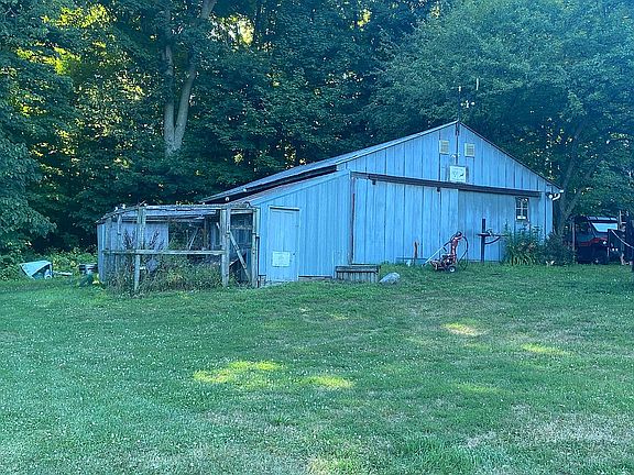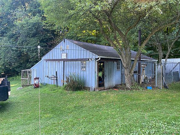 Country living yet close to the city this lovely 2 bed 1 bath home with full basement and walk up attic has 10 acres that are partially wooded for hunting and pasture that could be fenced for horses, also has a pond that you can fish in, an open deck and covered “BBQ bunker” to enjoy grilling eating and watching the birds or other wildlife. The roof was replaced 2 years ago and has transferable warranty, new high efficiency furnace was installed 3 years ago, upgraded windows with local made polar seal and had vinyl siding installed. There is a huge fenced in garden spot and grapes, blackberries and another garden spot we grew potatoes in. The 30x52 pole barn was erected in 2013 has electric and water run to it. The 20x36 workshop is insulated, has 100 amp service is set up for plug in generator to back feed the house in case of power outage, there is an attached chicken coop to the workshop. The pond house is wired for electric with light and aerator for pond. There is a hunting blind included also
