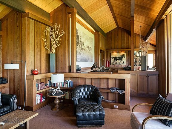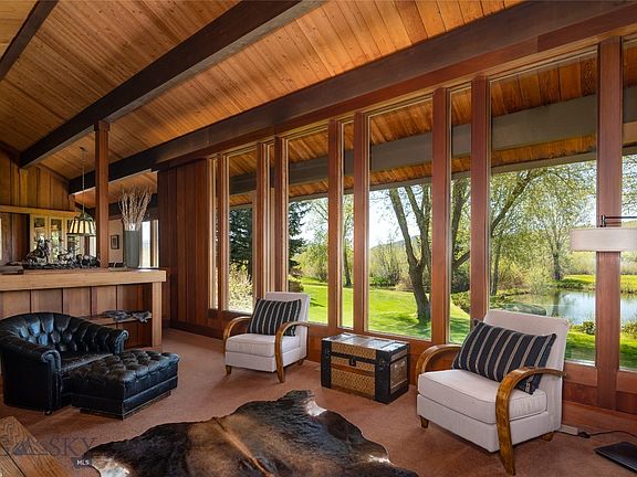 Jackson Creek Retreat is a custom designed home which was the personal residence of nationally acclaimed architect James D. Morton. A Morton home has long been recognized as being synonymous with quality at the highest level. The 4-bedroom 41/2 bath home comprises 5500 square feet on three levels. It incorporates 1930's vintage redwood timbers from N. California, old barn wood from ranch homestead structures, and rock fireplaces made of stones harvested on the property. The home sits on 40 acres in a rural mountain setting surrounded by a 2,000-acre cattle ranch. Parcel consists of native rangeland, lush creek riparian habitat, and Jackson Creek running the length of the property. The home overlooks a spring fed pond. The homesite is very private and secluded, surrounded by mature landscaping and native vegetation. Typical of a Morton home, the architecture of the residence blends seamlessly with the natural terrain and surrounding landscape. Bozeman is a short 15-minute drive.