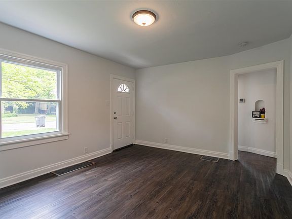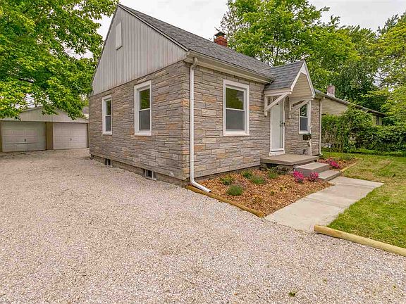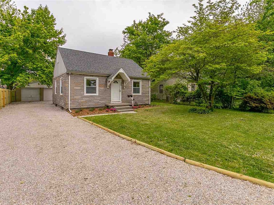 Charming Bedford stone cottage on a quiet East side street. This 2 bedroom, 1 bath home has been completely remodeled with brand new kitchen, bath, floors, drywall, roof and more. Inside you'll find brand new LVT flooring, with new carpet only in the bedrooms. The kitchen features brand new cabinets, countertops, and stainless appliances. There is a mudroom off the back that leads to an unfinished basement for additional storage. Outside you'll find new landscaping, gravel driveway with partial new privacy fence and a detached 2 car garage. A one year home warranty is being provided for new buyer peace of mind.