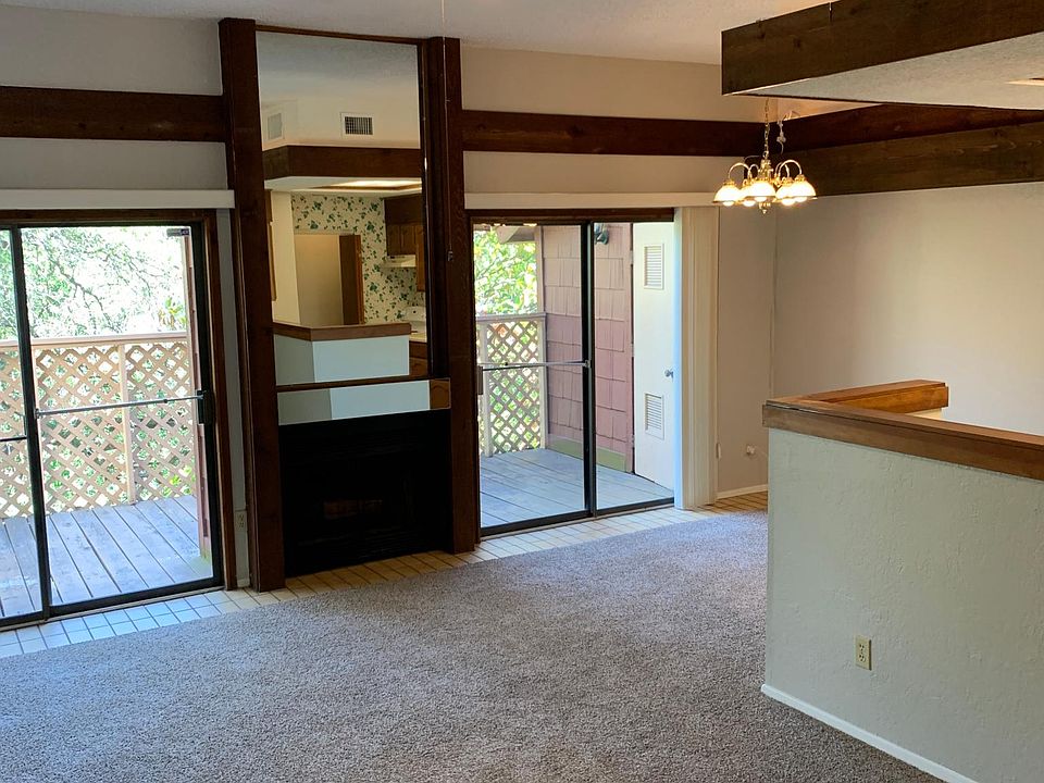 Duplex, fireplace, decks on both floors, new tile, carpet, toilets, stove, refrigerator, ceiling fan, garbage disposal. Washer and dryer connections. LED efficient lighting. Professionally cleaned top to bottom. Freshly painted. Nonsmoker, no pets except registered service dogs. Maximum occupancy two people