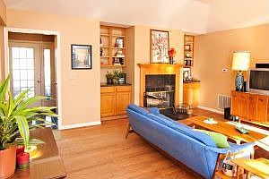 GREAT ONE LEVEL LIVING! Spacious Rooms ... Hardwood and Tile floors throughout. Living Room with FP, Builtin shelving, Cathedral ceiling. Charming Breakfast Rm with bay window. LR & DR walk out to huge Covered Patio -18.5 x 12. Private backyard with landscaped lot and trees. Wood privacy fence. HOME WARRANTY