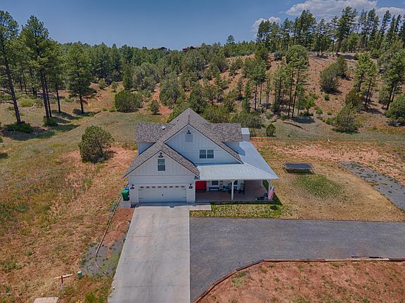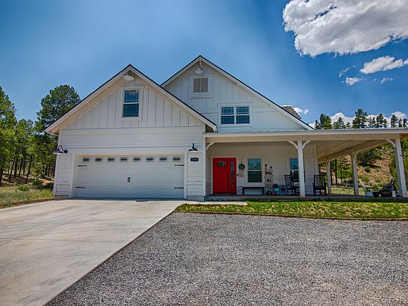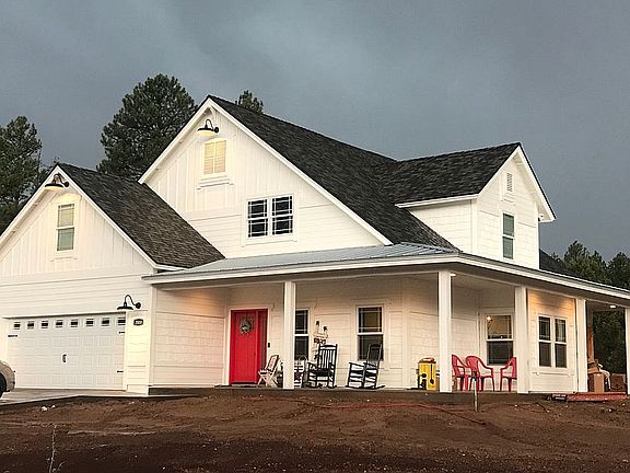Wow Factor! This gorgeous farmhouse deisgn backs National Forest and just minutes from town. Offers ALL CITY SERVICES & NO HOA FEES. Your buyer will love the charm this home has with a wrap around covered porch offers. Boasting 2 master suites, Anderson windows, spray foam insulation, bonus game rm/family rm, working rm, stunning kitchen with large kitchen island, beautiful tile floors, shiplap, A/C, tankless water heater, master down with double vanity sinks, large walk in pantry with separate laundry room. Exterior outside building shed for an office or whatever you need! And much more! This one is a GEM!