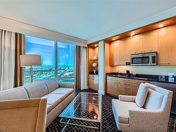 Rare 33rd Floor Premium Mountain / North Strip View studio at Trump Tower Las Vegas. Carpet/marble flooring, granite counter tops, built-in cabinets, Jacuzzi tub, fully furnished and fully stocked kitchen. Trump Tower amenities include 24-hr security, concierge and dining, restaurant, pool, susana, steam room, salon, bar/lounge, cabanas, conference rooms and so much more. The entire property is smoke free. All utilities are of course included - HOA, Electric, Gas, Water, Sewer, Garbage, Cable, Internet & Valet. The Fashion Show mall & Wynn Las Vegas are right across the street, not to mention the hundreds restaurants to choose from, all w/in walking distance. The level of service here and the build quality is top notch compared to proprieties like the 4 star MGM Signature and Palms Place.