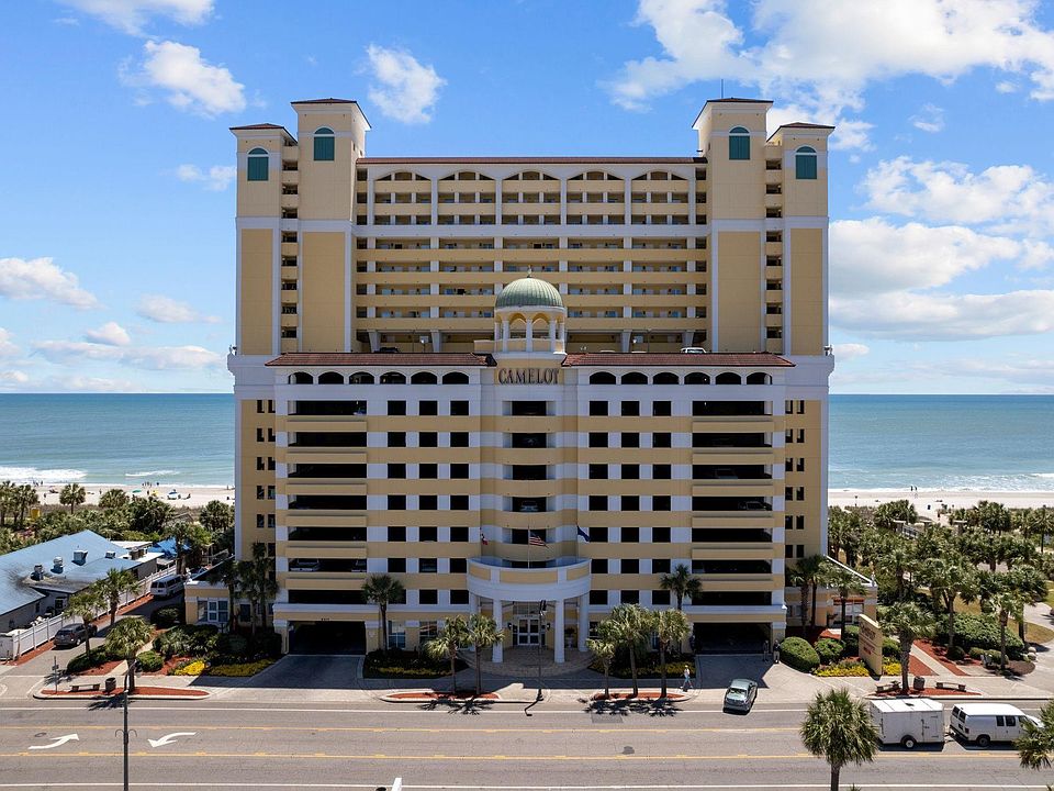 Just reduced Price! Best One Bedroom Buy at Camelot By the Sea! Direct Oceanfront! Welcome to your turnkey furnished Oceanfront condo located on level 2. No elevator wait! Drive right up to unit. When you are ready for a swim in the pool and walk along the sandy beach just walk one floor down. (Also just around the corner is an elevator that can take you right there.) Nice exercise room is also a few steps down the hall. This Beautiful front ocean view also has pretty palm trees in the vista view! . Laundry facility is also one floor down. Interior electricity, internet, cable tv, and more are included in the HOA fee. Camelot is a well kept resort with nice pools (Both outdoor and inside heated lazy River), as well as jacuzzi pools . Guest also enjoy the tiki pool bar open daily in season from 12pm to 6pm. The hotel is walking distance to the Myrtle Beach Boardwalk, Skywheel and popular Family Kingdom Amusement Park. Myrtle Beach Airport is only 4 miles away which is very convenient for vacationers. FUN IN THE SUN! Camelot 216 is a fantastic rental property or perfect 2nd home for anyone who wants to be on the ocean without the fear of Heights. Property can sleep 2-5 people comfortably with the Living room pull out couch. Gross rental income last year was 33,400! (Higher than a lot of 2 bedrm gross rentals.) Owner just installed new stainless appliances, replaced glass on slider Call to see this incredible turn key condo today!