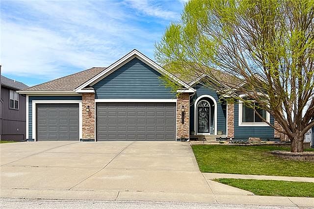 Stunning Reverse 1.5 Story in Highly Desired Harbor Lake! Beautiful .22 Acre Setting backs to Community Trails and Greenspace. Lots of NEW! HVAC 4 Years Young, New Roof, Remodeled Main Level Bathrooms, New Pergo Waterproof Flooring and Fresh Paint throughout Main Level, New Feature Carpet on Stairs, and more! Amazing Open Main Level Floorplan. Great Room offers Fireplace with New Tile Front, Soaring 11' Ceilings, and Beautiful Views of the Backyard and Trees. Spacious Kitchen with New Bosch Dishwasher, Frigidaire Gallery Microwave and Stove/Range with Air Fryer feature! Walk-In Pantry and Custom Cabinets offers great Kitchen Storage. Dining Area with Vaulted Ceiling Walks Out to New Deck with Stairs to Patio Area. Main Level Primary Bedroom Suite with Pergo Floors, Vaulted Ceilings, and Fully Remodeled Master Bathroom. New Shower with Tile Walls, Glass Door, and Built-In Shelves. Double Vanity with Raised Sinks, Shiplap Accent Wall and New Round Mirrors. Walk-In Closet with Lots of Hanging Space and Built-In Shelves. Second Bedroom on Main Level with Vaulted Ceilings and Double Door Closet. Second Full Bathroom features New Shiplap Accent Wall with Mirror, New Light Fixtures, and Tub/Shower. Laundry made Easy on Main Level! Finished Lower Level offers Open Living Space with Bonus Space great for Working from Home! Two Additional Bedrooms in Lower Level with Spacious Walk-In Closets. 3rd Full Bathroom with Tub/Shower and Large Vanity. Spacious Storage Room with Built-In Shelves. This community offers a swimming pool, walking trails, and is minutes away from Smithville Lake! You'll LOVE this Home!