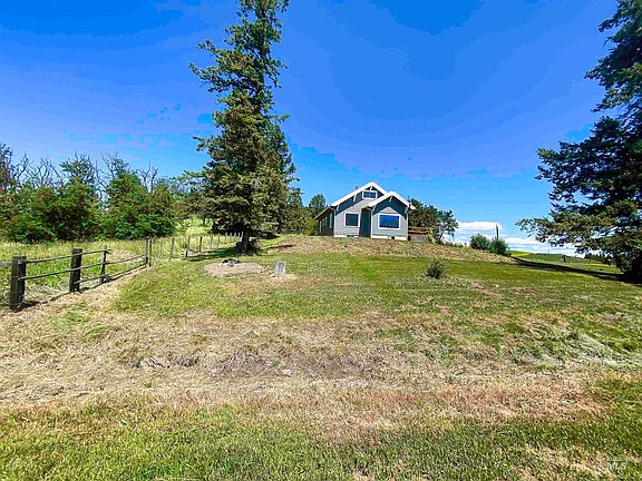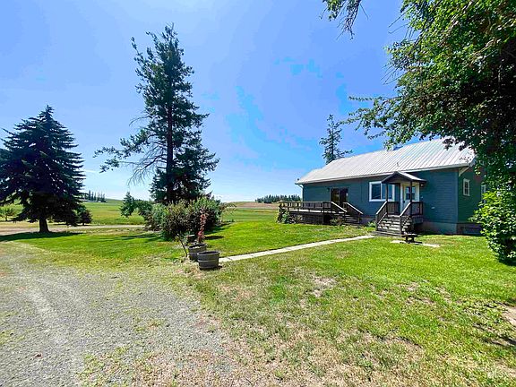 Idyllic country setting just minutes south of Moscow. Charming farm home on 4.7 lovely country acres with over 2 acres of trees including, apple and plum. Dining room with beautiful built in hutch, wood floors and tiled area in converted patio. Large picture windows overlooking the rolling hills of the Palouse. One main level bedroom, 2nd level landing houses shared closet for two upstairs bedrooms. Full unfinished basement ready for your touches.