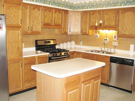 Move in ready, only thing missing is you! Replaced windows 2002, Roof 2016, beautiful oak cabinets, island with eat-in-kitchen. There is a large living room with stone fireplace. Head back to your patio doors and enjoy your covered deck. Solar Attic fan installed in 2017.