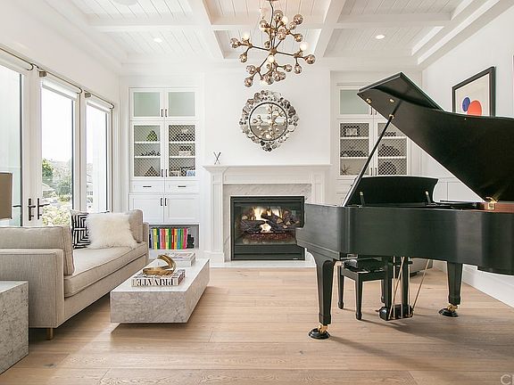 - Built-Ins, Stone Counters, High Ceilings (9 Feet+), Open Floor Plan, Coffered Ceiling(s)