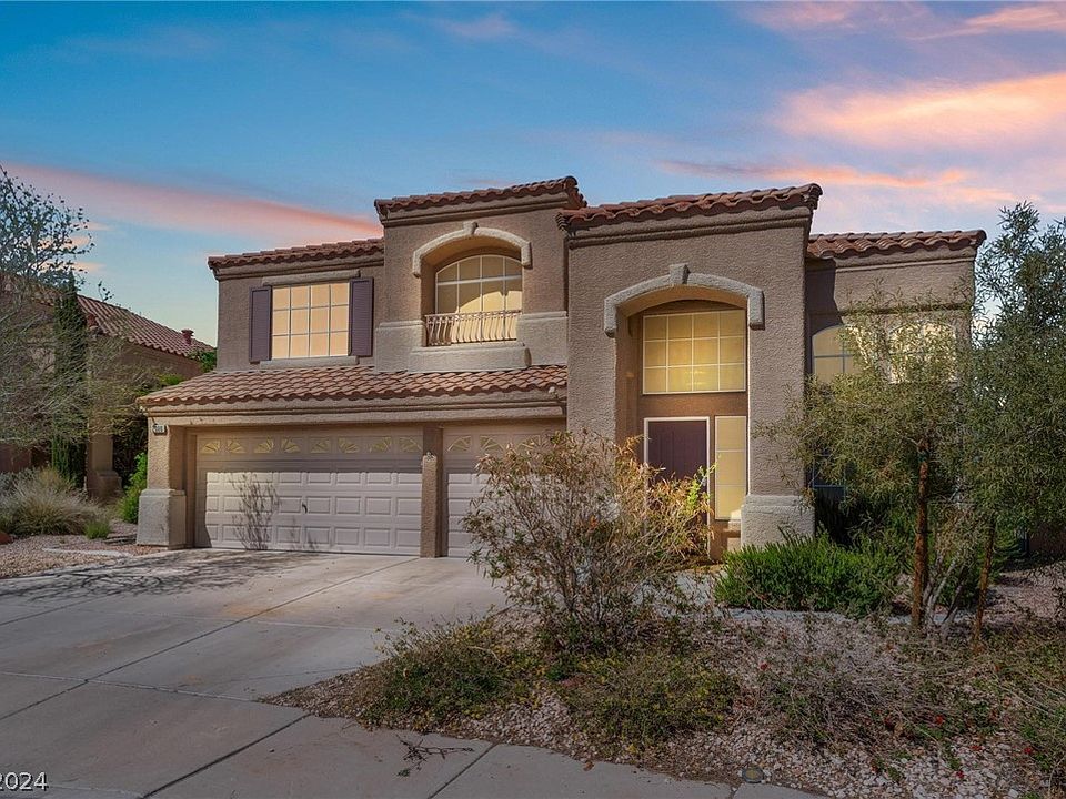 Gorgeous newly remodeled 4 bedroom home in the heart of Green Valley on a large lot w/ a 3 car garage, huge sparkling pool with diving board, spa, & walking path behind! Covered entry w/ HUGE vaulted ceilings & tons of natural light. Open concept, formal living room, dining area, & family room w/ cozy fireplace. Kitchen features stainless steel appliances, new countertops & hardware, island, double oven, farm sink, & new gas range. Bedroom & 3/4 bathroom downstairs. Oversized master bedroom includes dual vanities, garden tub, walk in shower, & huge balcony off of the master. 2 additional bedrooms upstairs, one includes a murphy bed. Huge covered patio & real grass. Easy access to Green Valley Ranch & The District. 10 minutes to the airport & 15 minutes to the strip. This home has it all! 2 new AC's in 2021, new paint throughout 2022, new fridge and dishwasher 2023, new weatherstripping around all doors 2023. Updates in 2024 include kitchen, all bathrooms, hardwood floors, & new sod.