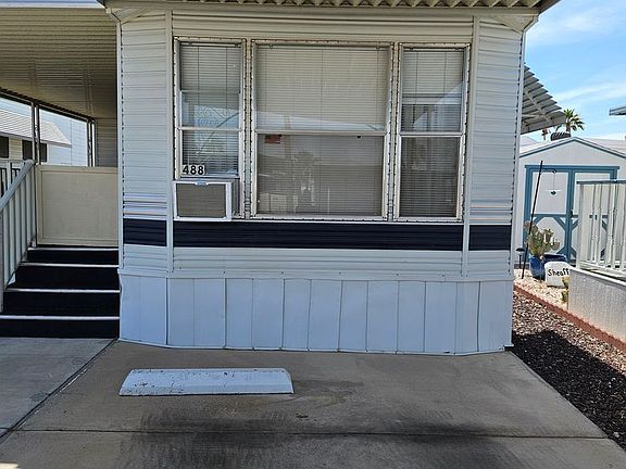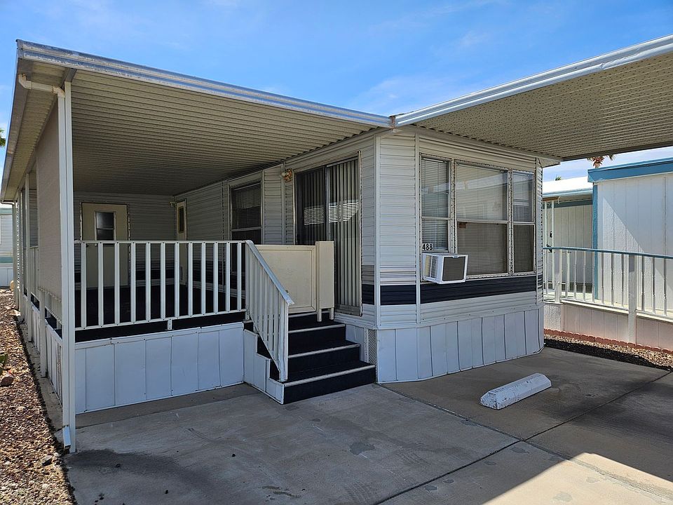 Here is your chance to live in beautiful Riverview RV Resort for 55+. Golfing, pool, tennis and pickle ball courts. This 1 bedroom 1 bath 394 sq foot home offers a comfortable home with large fenced front porch. 2 Parking spaces in front, attached laundry room with new washer/dryer and detached shed for storage. Located in Central BHC, come and enjoy all that resort living gives you. All applicants must apply to HOA prior to move in. Small pets OK.