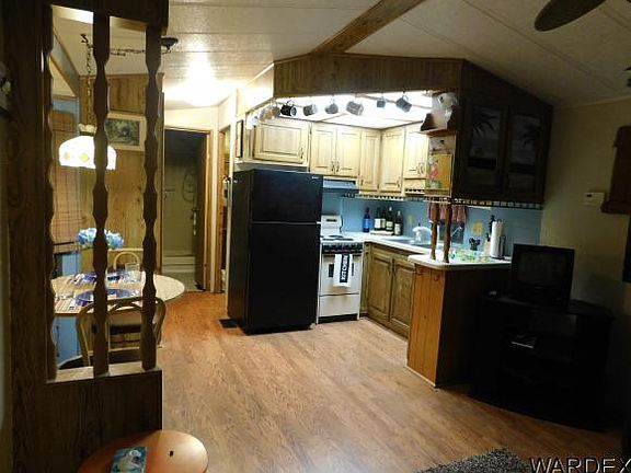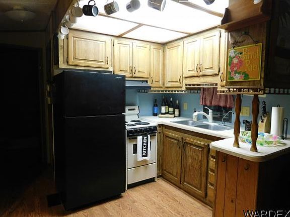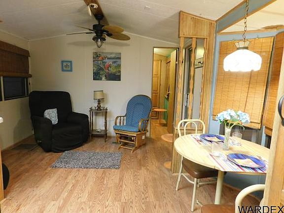 Great location on the 6th fairway! Come relax and enjoy your view in this 2 bedroom, 1 bathroom park model. Laminate flooring in living, kitchen, dining, and bedrooms. Bathroom has new laminate flooring Fully furnished. Laundry room with washer and dryer. Move in and start joining in the fun! Enjoy the beautiful Arizona sunsets from the covered deck. Covered deck and parking. This 55+ active adult community has amenities galore; golf, tennis, pickleball, club house, 2 swimming pools, Jacuzzi, card room, billiard room,indoor shuffle board, horseshoe pits and also large ballroom for special events throughout the year. HOA dues include water, sewer, garbage, and cable. Remember you OWN the Land & unit. Come join in the fun!