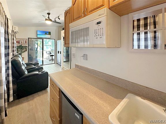 Exceptional Golf Course Home: 2013 1 Bed, 1 Bath, Bonus Room, Kitchenette & Ample Parking for Trailer and Multiple Cars!Seeking your dream home in a tranquil location? Your search ends here! Nestled on the golf course, this enchanting property is a true gem, offering stunning views and unmatched serenity.Featuring a cozy 1-bedroom layout, this distinctive home easily accommodates a hide-a-bed couch for added comfort. The 1-bathroom configuration ensures practicality without compromise, while the house boasts a convenient kitchenette, perfect for leisurely mornings and entertaining guests. Plus, a versatile bonus room lends itself to various uses, be it an office, study, or guest suite.Key Features include a recently upgraded interior in 2022 with fresh paint, vinyl plank flooring, vanity, and new double-paned windows in the front room. Additionally, a split AC unit installed in 2023 provides both heating and ample cooling, along with an on-demand water heater.Enjoy Riverview Resort amenities such as a beautiful par 3, nine-hole golf course, two heated pools with indoor & outdoor spas, tennis and Pickleball courts, excellent horseshoe pits, a beautiful dog exercise area, large Grand Room for dances and events, laundry room and showers, billiard room and library, exercise room and sauna, craft room with kilns, a multipurpose card room, and six-lane shuffleboard.Don't let this incredible chance to own a slice of paradise on the golf course slip away. Book your viewing today and turn this house into your new home. Not furnished: The house does not come with any furnishings, including the closet system in the front room (consisting of racks, rods, and curtains), as well as all outdoor pots, plants, and decorations. Buyer to verify sq.ft. and utilities. The seller, a licensed Realtor in AZ, ensures that the house comes semi-furnished, with the exception of personal items.