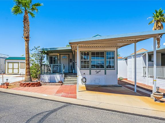 Welcome to easy living in this well-maintained home, perfectly located in a popular 55+ gated community that blends comfort, convenience, and an active lifestyle. This home features a spacious layout with plenty of room to relax, entertain, or simply enjoy day-to-day life. A large outdoor shed offers extra storage for tools, hobbies, or golf clubs. The community itself is packed with resort-style amenities, including tennis and pickleball courts, a fitness center, shuffleboard, and inviting indoor spaces like craft and card rooms. When it s time to unwind, take a dip in one of the two sparkling pools or soak in the relaxing spas. A staffed guard shack provides security and peace of mind, so you can focus on enjoying your surroundings. Conveniently located just minutes from grocery stores, local parks, and shopping, this home is also a short drive from Laughlin s casinos and entertainment making spontaneous nights out easy and fun. Whether you're looking to settle into retirement or simply want a peaceful, well-connected community to call home, this move-in-ready manufactured home offers the perfect opportunity to enjoy life at your own pace.