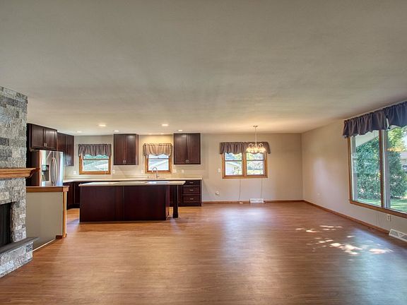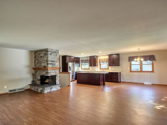 Totally TURN KEY...OPEN CONCEPT ranch home completely updated and ready to move in and start entertaining. New kitchen with SS appliances, solid surface counters and large work island . Kitchen completely open to spacious dining area and great room with NFP. New luxury vinyl plank flooring throughout entire kitchen/dining/great room. Patio doors leading to a large outdoor patio. Two spacious bedrooms with newly finished HWF's. 3rd Bedroom has new carpet and connecting full bath that is completely redone (double sinks). Fresh paint throughout entire home. Beautiful stone exterior and freshly painted trim/wood. This home is move-in ready and just awaiting your new buyers.