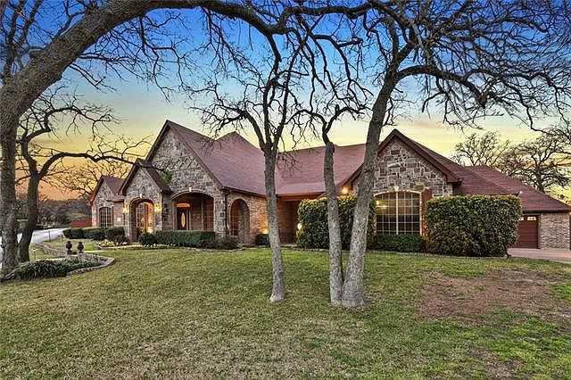 Stunning Custom ONE STORY home located in a private country setting! Cul-de-sac location on a beautiful treed lot. NO HOA!! Open floor plan offers a huge family room with a floor-to-ceiling stone fireplace with cast stone surrounds, 4 bedrooms plus a study with it's own outside door. Fabulous kitchen offers white cabinets, granite counters, gas cooktop, double ovens and walk-in pantry. Every room has CAT 5 wiring and family room is wired for surround sound. 3 car oversized garage with one bay used as a workshop with 220 & a half shop bath; insulated doors; epoxy floors; outside RV pad w-electric outlet; floored attic. Great covered porch with a waterfall feature in backyard. Fabulous home & setting!!