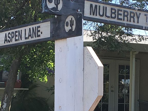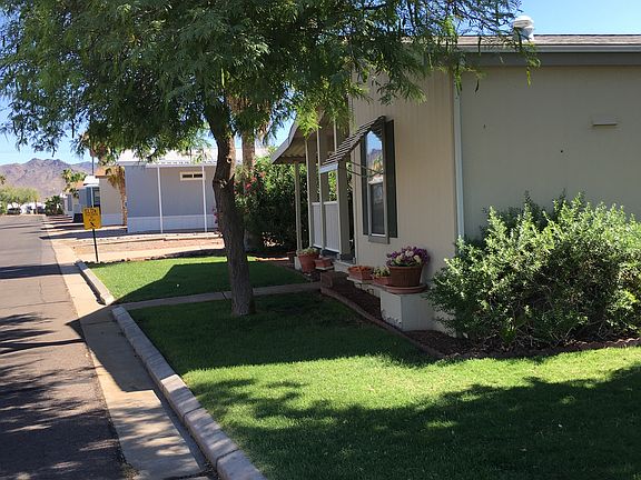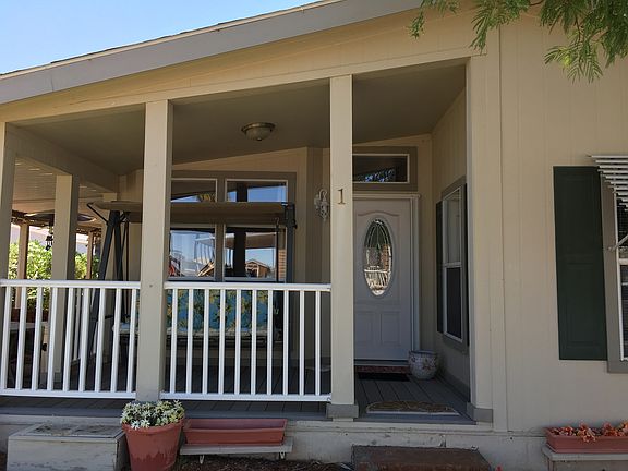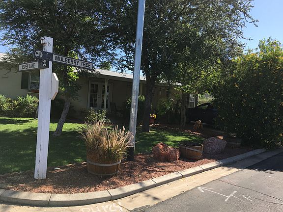 Buena Vista Park. One of a kind. Large corner lot with mature landscape, large shade trees, grass, pavers, sprinkler system. Great Room with vaulted ceilings, recent laminate wood flooring, 2 French doors. Huge eat-in kitchen with pantry, generous number drawers and cabinets, newer flooring, pass through bar. Ceiling fans throughout. Updated bathrooms with recent flooring. Roof-top deck. 2 out-buildings: Carpeted storage room with window, A/C, built-in closets and storage. Shop/tool room with A/C, window, built-in work benches, inside and outside, cabinets and drawers, shop fridge. Water Softener and Reverse Osmosis. Laundry room with built-in storage, includes washer and dryer. 2-car covered carport. Recent paint. Front porch. 2 large covered patios with ceiling fans, extended pavers. Screened AZ room with ceiling fan, plumbed for hot tub.