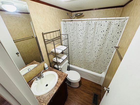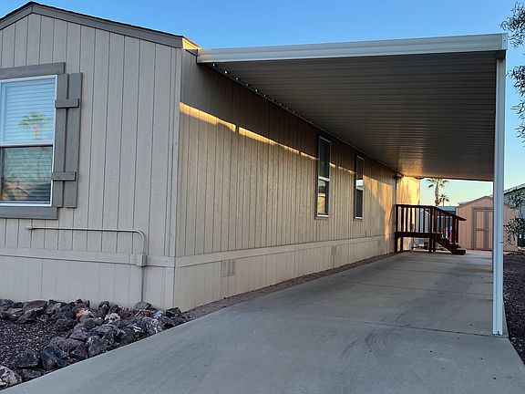 As you drive into this picturesque resort like gated community, enjoy the comfort and style of this charming 3-bedroom, 2-bath single-wide manufactured home. This home offers an open-concept floor plan perfect for modern living. Appreciate the added privacy with the primary bedroom located on one end of the home, while the two additional bedrooms are tucked away on the opposite side. The covered carport gives plenty of space for multiple cars. Includes washer/dryer, microwave, dishwasher, refrigerator and stove. Nearby shopping centers, restaurants, parks, food trucks and more.