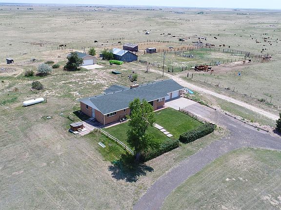 Beautiful mountain view and sunsets; quiet and peaceful ranch home on 40 acres! Updated, open-concept floor plan with tons of space an outbuilding (30x24) and a barn (29x30); new roof June 1, 2018. This beautiful property includes over 3,600 finished square feet, 5 bedrooms and 4 bathrooms with great living space and an updated kitchen with eat-in dining and access to a covered patio. There are two fireplaces throughout the home creating a cozy, warm feeling throughout. There is a large workout room downstairs as well as a craft and storage room. The home comes with a new well and septic, both installed in 2014. This home has all the space you need, both inside and out. Come enjoy the peaceful Eastern Plains! Property recently cleaned up.