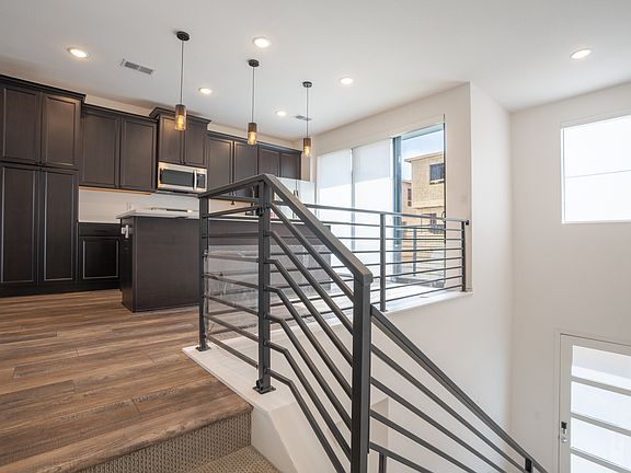 Step inside to an open-concept layout highlighted by expansive windows, high ceilings, and sleek finishes throughout. The chef-inspired kitchen is a true centerpiece, offering quartz countertops, stainless steel appliances, a large island perfect for entertaining, and soft-close cabinetry. Automatic premium window coverings add both style and privacy at the touch of a button.
