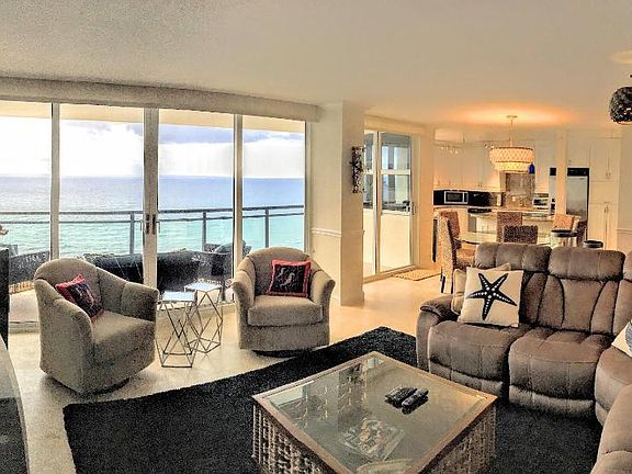 Spectacular LOW-PENTHOUSE in one of the most sought after stacks at Whitehall! Beautiful renovated 2 Bedrooms, 2 Baths unit with fabulous DIRECT OCEAN VIEWS from the Living/Dining Room & Kitchen.Sweeping city views to the West from the Bedrooms. Enjoy breathtaking sunrise and sunsets from this high floor residence! The large oceanfront balcony boasts a sleek and sophisticated glass rail for excellent wind barrier and optimal visibility of the coastline. OPEN KITCHEN with central cooking island, extra tall wood cabinets, granite counters, stainless steel appliances and wine cooler. Built-in efficiency desk in kitchen overlooking the ocean. Marble floors in living areas with elegant architectural accent in entry foyer. All updated marble bathrooms with alluring designer finishes. See more...