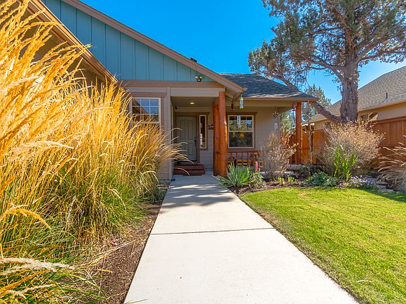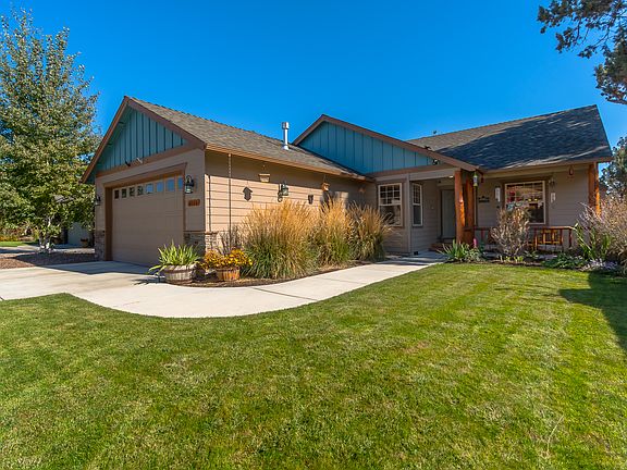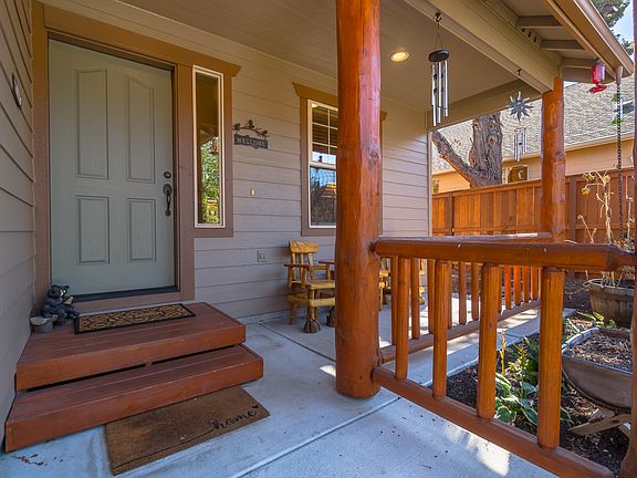 Hard to find, 4 bedroom single level beauty is close to town and has easy access to Bend. Fully landscaped front and back yards, with auto sprinklers and backs to an empty field with mature trees. The backyard features a raised flower bed, berry vines and fruit trees as well as an expansive entertaining area and firepit, where you can relax. There are beautiful log accents inside and outside of the home. Cozy up to the gas fireplace this winter and cool down with a/c during the summer heat. Home has a full ADT security system and surrounding motion sensor lights.