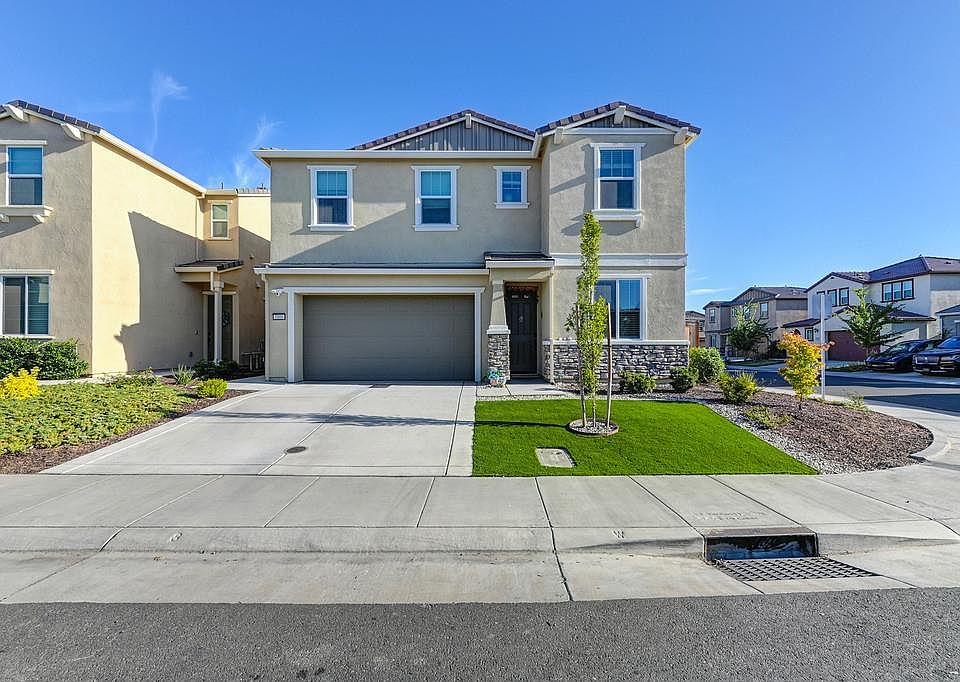 North East facing and located in the highly desirable Campus Oaks community of Roseville. The corner lot location offers extra parking and the option to extend the fence line for even backyard space. With over $40,000 in premium backyard upgrades. Step inside to find upgraded tile flooring throughout the main level and plush carpet upstairs.Open-concept kitchen features stainless steel appliances, a pantry cabinet, and a large island perfect for gatherings or casual family meals.Open living area makes entertaining a breeze.A full bedroom and bathroom with a walk-in shower on the main floor offer a private space for guests or in-laws. Upstairs, the primary suite includes a large ensuite bathroom and walk-in closet. A sunlit loft with built-in cabinetry provides a perfect space for a home office, media center, or play area and enjoy the convenience of an upstairs laundry room.Outside, you'll find a beautifully finished backyard with a large covered patio, extended concrete, artificial turf, and raised planter beds- designed for low-maintenance living and outdoor enjoyment. The location truly sets this home apart. Just a street from Campus Oaks Park, dog park, pickleball courts, and exercise equipment, AND NO HOA! Add in leased 11 panel solar system for energy efficiency