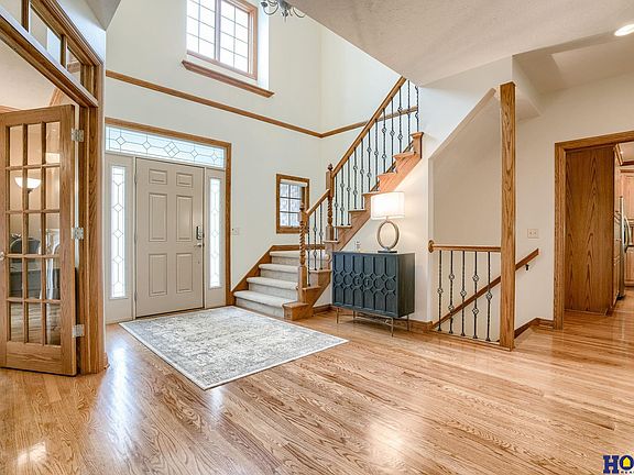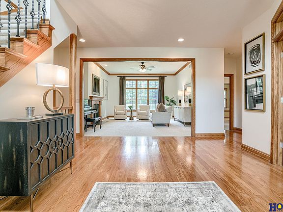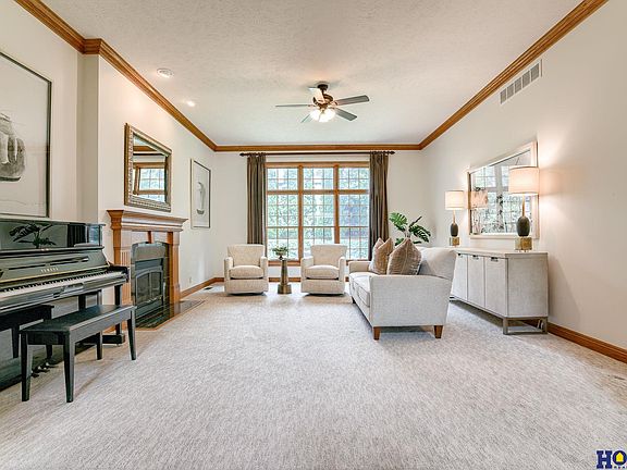 Experience grand curb appeal and luxury living in The Ridge, one of Lincoln's most sought-after neighborhoods. This exquisite 3-bedroom home exudes comfort & style. Step into a grand foyer with a two-story entrance, leading to a formal dining room or office and living room, each featuring a fireplace. The well-appointed kitchen boasts S/S appliances, a center island, and a hearth shared with the informal dining area. The primary suite includes a tub, shower, double sink vanity, and spacious walk-in closet. The main floor also features a dedicated powder bath and a convenient laundry/mudroom. Upstairs, find two generously-sized bedrooms + full bath. The lower level offers a cozy family room with a fireplace, a recreation room with a well-appointed wet bar, office or non-conforming 4th bedroom + a ¾ bath area w/ a dry sauna. The heated 3-stall garage includes epoxy floors & a spacious work area. The backyard is a private oasis, featuring a covered deck and mature landscaping.