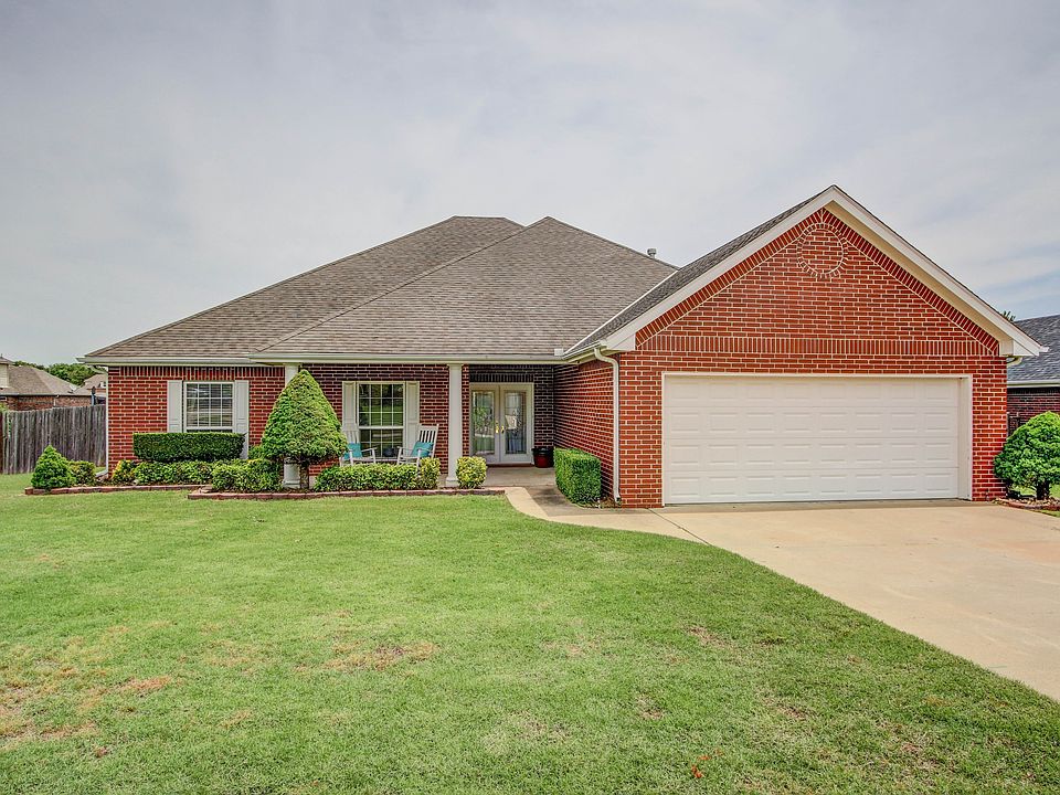 NEW CARPET INSTALLED AND LOOKS GREAT! This one level 2006 Brick Home is located on the SE part of Bartlesville. Wayside Elementary. 3 bedrooms & a separate office area c/b a wonderful 4th bedroom, two sided fireplace for the dining & living area. Split bedroom plan, large main bedroom/private bath with large shower/whirlpool tub, large walk-in closet. Towards the back of the home is a nice sunroom to sit and enjoy the view of the back fenced yard. Newly painted, kitchen cabinets.