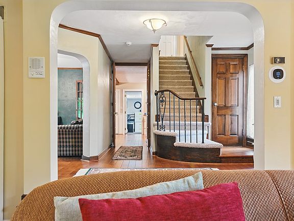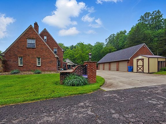 Stunning grand home full of charm on 3.5 acres with a 4-car garage and an extra 24x30 outbuilding with garage door and covered patio. This character-filled home features glass door knobs, arches, rich woodwork, cherry cabinetry, quartz counters, and a unique balcony off the master bedroom overlooking the living room with gas log fireplace. The primary suite includes Carrera tile, 2024 Corian vanities, and in-suite laundry. Enjoy a heated sunroom with built-in bar (excluding stools), expansive concrete patio, patio furniture, gas fire table, and flat top grill—all included! Other highlights: walk-out basement with family room and full bath, wood floors, 2023 roof, newer windows, whole house generator, large attic, and treehouse. Work from home with a private office and bath. Includes 220V outlet for EV, and 60” zero-turn mower. Located 4 miles from I-71, 45 min to Polaris, 46 miles to Amish Country. Unique, updated, and move-in ready—this one-of-a-kind home has it all!