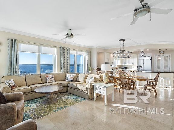Large 15th floor, 4BR/4.5BA condo in the last high rise on West Beach. Low density complex with drop dead gorgeous views of Gulf & Little Lagoon. EVERY bedroom has on-suite bathroom. TWO PRIMARY SUITES; both with shower & jetted tub. Additional half bath for guests. Two balconies; one south & one north side. Only 2 units per floor. Unit own entrance leading from elevators. No crowds passing in hallway. The kitchen has floor to ceiling pantry closet and adjacent wet bar. Unit has superb closet space, 3 walk-ins. Laundry room and small office space. Additional outside beach closet & inside locked storage closet. Shared bldg amenities include: indoor pool, sauna, steam room, fitness center, sitting/reading/TV rooms on second floor. Outdoor pool, heated spa, BBQ grills, pier, beach boardwalk, lagoon boathouse, fish cleaning station, parking. ATMOSPHERE: Go elsewhere for chaos. Perfect complex for owners who reside year round, rent or visit often. Summer season for beach lovers, Spring/Fall for golfers, Fall/Winter festivals for everyone. Located on a two lane road that dead ends in a turnaround. Speed limit is 35 mph & strictly enforced for safety. Condo ownership includes deeded joint access to beach lot across the street which has a gated south boardwalk with outdoor sand wash off station. Owners ALSO have direct access to Little Lagoon from shoreline or Mustique fish/boat pier. The north pier leads to boathouse. Typical activities on Little Lagoon include shallow keel boating, skiing, fishing, and paddle boarding. Owner turnover is rare. Southwest units are more rare. Find a similar floor plan, space, with water access for the price. Jack Edwards airport 6.6 mi; new boat launch/storage 7.8 mi; Gulf State Park 10 miles.