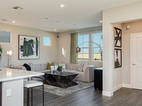 Residence 3, the largest of the three floor plans, offers 2,231 square feet of living space with 4 bedrooms, 3 bathrooms, and a spacious Loft. The covered porch offers a welcoming entry into the Residence 3. Welcome home to a spacious and sunlight main living space. The large Dining Room offers plenty of space for a large gathering table and buffet. The sliding glass door allows access out to the side yard, ideal for bringing the indoors out. With wrap-around windows, the Great Room is a grand space that opens up to the gourmet Kitchen with a walk-in pantry and eat-in, working island. Just off the Kitchen is a first-floor bedroom, ideal for family visitors, guests, or a private office space. Head to the upper level to a spacious hallway that leads to a multi-functional Loft. Located off the Loft is the Master Suite with a private bathroom and large walk-in closet. Ideally placed is the Laundry Room tucked just outside the Master Bedroom. Head to the bedroom wing and you find two secondary rooms with a shared bathroom and linen closet. Contact our Internet Home Consultants today to learn more about this floor plan!