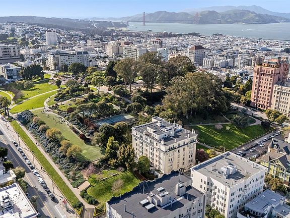2000 Washington, with only 7 residences, is an architecturally significant co-op apartment building in prestigious Pacific Heights. Enjoy stunning views of famous landmarks such as the Golden Gate, Alcatraz & Angel Island, Coit Tower and the north waterfront with glimpses of downtown and the bay to the east. This grand full-floor residence was updated several years ago with designs by Tucker & Marks ASID, Andrew Skurman AIA, in collaboration with Forde-Mazzola Construction. Renovated features include AC, whole house sound, gourmet kitchen, parquet floors and a functional floor plan for contemporary living and entertaining. Main elevator private foyer, entry library, oversized primary bedroom with sitting room, two spa baths + dressing rooms. Two guest suites, paneled office/den, powder room, hall gallery. Great room with double bays, terrace and fireplace. Also, formal dining room with breakfast nook, spacious kitchen featuring built-ins including commercial grade gas stove, butler's pantry with wine fridge, icemaker. Service elevator, laundry/utility room. Located in the common areas are 2 designated parking spaces, 2 storage rooms, access to the roof deck. Adjacent Lafayette Park, a few blocks to Alta Plaza. Shops and services nearby on Union, Fillmore, and Sacramento Streets.