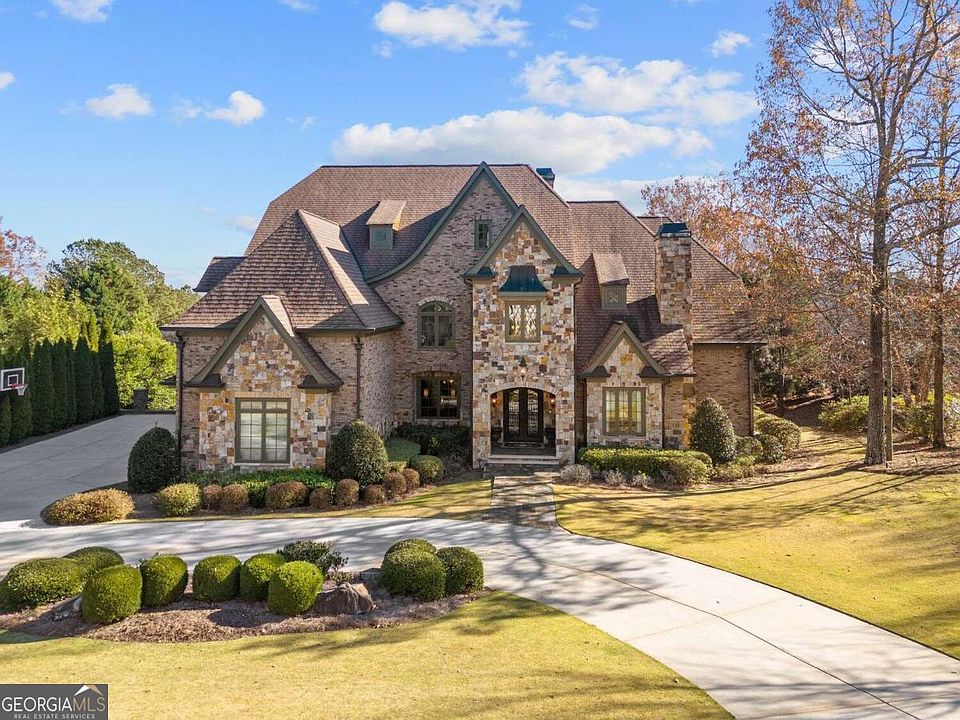 Step into the pinnacle of opulence within the prestigious confines of Johns Creek, GA's Country Club of the South. A testament to craftsmanship, this newer 2008 build seamlessly melds stone and brick in a majestic craftsman style, exuding superior quality at every turn. Detailed architectural millwork and stellar appointments elevate this estate into a class of its own. Upon entry, the grandeur of the two-story foyer and sweeping staircase envelopes the home in an ambiance of sheer luxury and inviting warmth that will enthrall you. Experience refinement in every corner-an intimate mahogany-paneled fireside library awaits, while a spacious formal dining room sets the stage for your elegant gatherings and holiday soirees. Embark on a culinary journey in the chef's kitchen equipped with a SubZero refrigerator, Wolf gas stove & double ovens, Bosch dishwasher, custom cabinets, an expansive island, and a walk-in pantry. Seamlessly connected to the breakfast area and vaulted fireside family room, entertaining becomes effortless. Adjacent, an oversized living room with a custom limestone fireplace and intricate ceiling design invites formal gatherings. The primary suite is a haven of indulgence-a dramatic dome ceiling, a fireside sitting area, separate His & Hers bathrooms, custom walk-in closets, and a morning bar create a private sanctuary. Serenity awaits on the enclosed sun porch with direct access from the suite, perfect for relaxing or entertaining and complemented by a beautiful stacked stone fireplace. The upper level offers five oversized en-suite bedrooms with custom closets and a dedicated media/reflecting area, ensuring comfort and privacy for all. Abundant storage spaces grace this level while luxury meets practicality with two laundry rooms on the main and second levels. The terrace level redefines entertainment-a full bar & kitchen, billiards and card rooms, fireside family room, expansive media/evacuation room that seats 12+, mirrored exercise room, and an additional en-suite bedroom await. Immediately off the terrace level is a second enclosed sun porch with a large grill that is just perfect for your casual get-togethers. The coveted elevator accesses all three floors effortlessly. Beyond luxury, this home is equipped with a water purifier/softener, Aprilaire Purifier, a home generator and a 220V connection in the garage-ensuring comfort and efficiency. No detail has been overlooked and no expense has been spared in this absolutely amazing, one-of-a-kind estate that you would be proud to call home. Welcome to a lifestyle of sophistication and refinement in this truly exceptional home in the Country Club of the South.