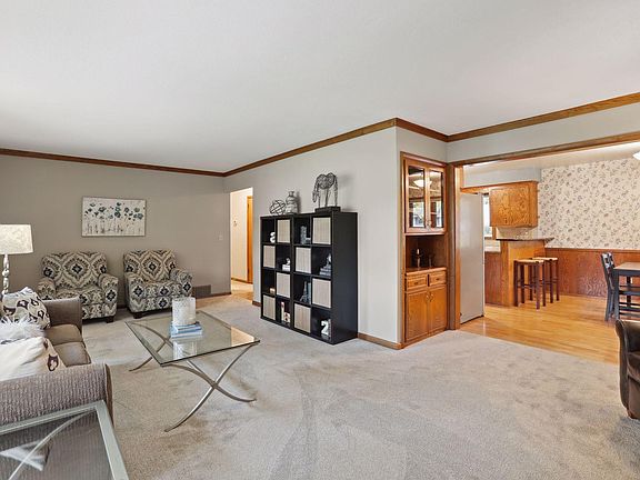 Don't miss this welcoming 4BR/3BA Golden Valley rambler! A circular driveway welcomes you into this home. Kitchen features Cambria countertops, S/S appliances including an armoire fridge, and breakfast bar. Fresh paint and new carpet throughout upper level. LL carpet only 2yo. Gorgeous refinished hardwood floors in upper 3 BRs. Owner's suite features a private 3/4 bath! Beautiful bay windows in living room and 2 BRs allow lots of natural light. Majority of windows have been replaced with Andersen Windows. Ultra durable James Hardie cement board siding and brick façade. Finished lower level walks out to a stamped concrete patio overlooking the large flat yard. Close to several parks (Wesley Park, Medley Park), Hwys 169 & 55, and downtown Mpls. Satisfy all your outdoor, shopping, and restaurant needs in minutes!