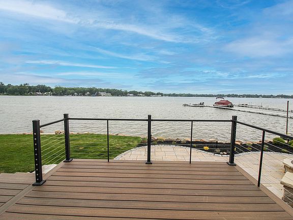 Everything about this home makes it a MUST SEE! You will fall in LOVE with this home's pristine surroundings, breathtaking views of the water, and unbeatable sunsets on highly sought after all-sports Fishers Lake. This move-in ready home offers bright spaces, high ceilings throughout, and nearly 100' of sandy shoreline, perfect for year-round living or a spot to make endless summer memories with friends and family. The modern, airy kitchen, large living room, and primary bedroom have full lake views with access to the new, modern deck. The third bedroom makes efficient use of space with built in bunks and dressers and access to a cleverly functional laundry area. The oversized 2 1/2 car detached garage has an area for a workshop and provides ample room for lake toy storage. Everything about this home makes it a MUST SEE! You will fall in LOVE with this home's pristine surroundings, breathtaking views of the water, and unbeatable sunsets on highly sought after all-sports Fishers Lake. This move-in ready home offers bright spaces, high ceilings throughout, and nearly 100' of sandy shoreline, perfect for year-round living or a spot to make endless summer memories with friends and family. The modern, airy kitchen, large living room, and primary bedroom have full lake views with access to the new, modern deck. The third bedroom makes efficient use of space with built in bunks and dressers and access to a cleverly functional laundry area. The oversized 2 1/2 car detached garage has an area for a workshop and provides ample room for lake toy storage.