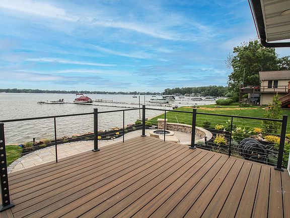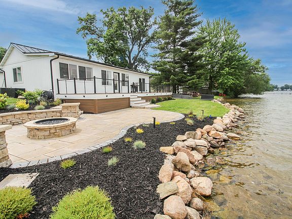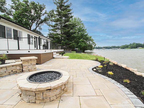 The home has been completely remodeled in the last five years, inside and out, including new siding, metal roof, and all new windows and doors. The new septic system was installed in 2021. The current owners contracted the stunning overhaul of the exterior in 2023, as well as installation of a new deep water well. The brand new, maintenance-free Trex deck, and expansive stone patio with gas fire pit are great for easy entertaining, and the low-voltage lighting installed throughout the gorgeous landscaping makes the property glow at night. To further ensure ease of maintenance, a lake-fed sprinkler system was also installed, and the concrete seawall was reinforced with stacked boulders.