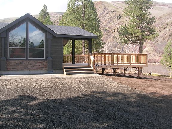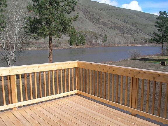 New manufactured home on river side lot. 100' x 200' deeded property to the river bank. New 175' sweet water well, new septic system, 3 all weather water hydrants, 6" of fresh top soil graded and leveled. 2 bedroom, 2 bath, sitting room/den/office, huge storage capacity, beautiful country kitchen with walk in pantry, dining area over looks the huge cedar deck that fronts the river bank. Master suite w/two sinks, step in shower, two huge linen closets, walk in cloths closet. Guest room with adjacent full bath w/shower/tub. Over all foot print 26'x60' w/ 26 x 28 deck. 35'x30' shop, RV pad w/ dump/water and electric. $349,000, owner/developer, shop can be customized to buyers requirements. Hard to find, perfect for retirement home, 20 minutes to L/C Valley shopping/excellent health care/Costco/Walmart/Albertsons, etc,etc. Eagles, Hummingbirds, Deer, Elk, Salmon, Flyfishing. Land Contract Available. Make offer. BUYERS AGENT COMPENSATED!