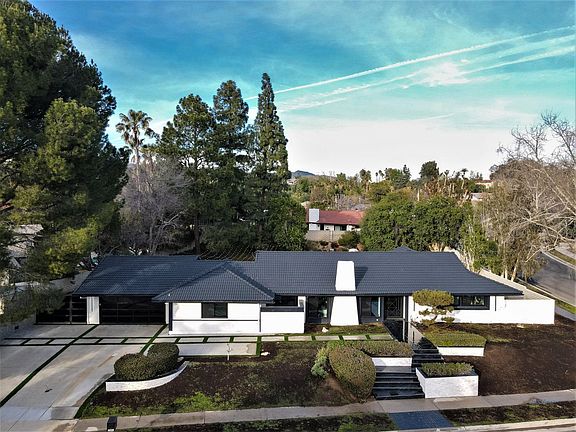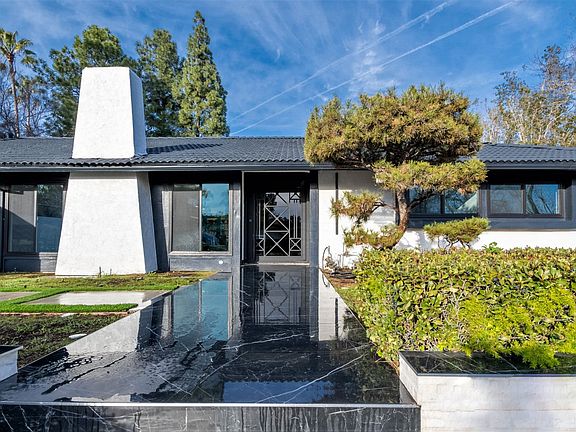 One of a kind modern dream home in Chatsworth with the perfect location and so much beauty! This enchanting property offers privacy, custom features, and eye-catching details that set this home apart from all others in the neighborhood. Fully remodeled , this exudes elegance. Create lasting memories in a well-illuminated floor plan consisting of Five bedrooms, Four bathrooms and 3,250-SqFt of impeccable living space. Nestled under a soaring vaulted ceiling, find a formal living room with an abundance of light and a gorgeous marble fireplace, along with a dining area that has a sliding door leading out to a patio space. The home has an open concept layout for the Great room and the kitchen, creating a wonderful space for hosting. The immaculate chefs kitchen will have you excited to prepare meals and make your favorite beverages. The kitchen showcases high end built-in appliances, a center island with built-in range, a Thermador double oven and wine refrigerator. Other highlights include freshly painted walls, new flooring, LED lighting throughout, plus two AC units and a laundry room. Two very spacious Primary Bedrooms, both have a private en-suite bathroom. The main primary has a deep walk-in closet and a sliding door with a pool view. Every bathroom in the home has a LED vanity mirror and ample storage space. Outside presents an entertainer's Utopia complimented by lush greenery and ample privacy. The space includes a built-in BBQ, a saltwater pool and spa, with an addition of 2 covered patios that are begging for company! Property has a HUGE attached garage with concrete flooring, a built-in storage and enough space to park Four vehicles, as well as a sizable driveway that can be perfect for an RV. Located on a massive 17,524-SqFt corner lot. Short distance from Shopping centers, schools, popular dining options and more.