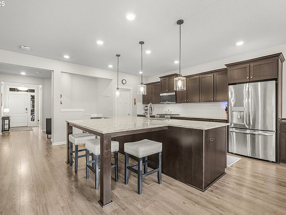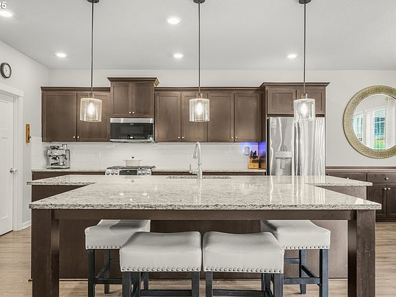 This beautifully crafted contemporary home offers the perfect balance of luxury and comfort in one of Tualatin’s best locations. Featuring 5 spacious bedrooms—including a main-level bedroom with a full bath—this home provides flexible living for guests or multi-generational needs. At the heart of the home, a chef’s kitchen impresses with an oversized island, sleek updated appliances, a walk-in pantry, and a built-in workstation. It flows seamlessly into a generous dining area and an expansive great room, thoughtfully designed for both relaxed living and effortless entertaining. Step outside to a private backyard retreat, complete with a covered patio, a newly installed stone terrace, and a tranquil water feature—ideal for hosting guests or unwinding in style. Upstairs, a versatile loft provides the perfect space for media, play, or quiet retreat. A custom-built work zone supports everything from creative projects to homework and remote work. The private primary suite, set apart at the end of the hall, offers a peaceful escape with a beautifully appointed en suite featuring a soaking tub, double vanity, and walk-in closet. 3 additional bedrooms and a full bath complete the upper level, offering generous accommodations for a variety of needs. This exceptional home combines a thoughtful layout with high-end finishes to deliver comfort, sophistication, and seamless indoor-outdoor living in a highly desirable setting. Bonus: owned solar panels keep energy costs low. Schedule your private showing today.