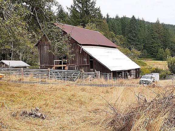 Nice 35- acre estate with year round stream (kid friendly waterfall)running thru the property. Mostly wooded with a large 4800 sq ft historic barn w/pasture. Stream fronted 2100 ft.home to front of property with additional 2,150 square foot studio with a two car garage. Large shop/garage. There are seven acres of pasture and 28 acres mature forest. Possible OC with half down. Quick 14.8 miles off I5 (18+- minutes). Elev. 400 ft. Plus the property has a permanent installed travel trailer with all utilities.